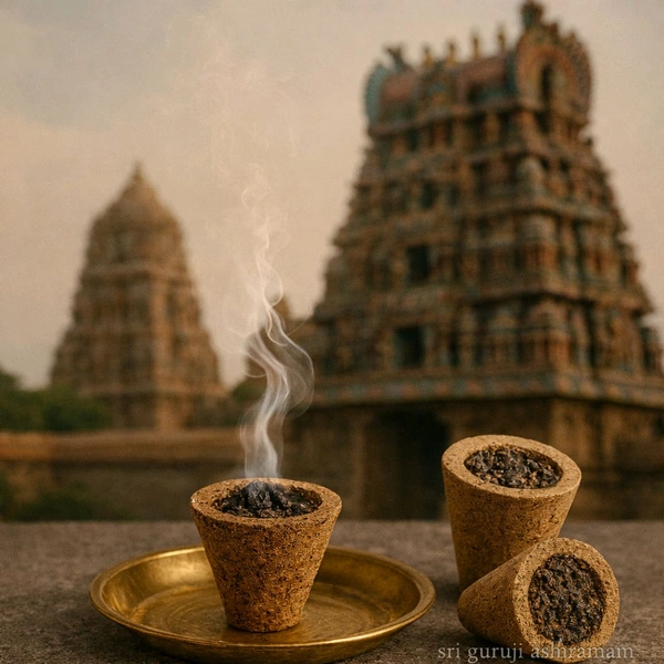 Ingredients: Typically includes benzoin resin (sambrani), cow dung,108 herbal powders other natural aromatics.