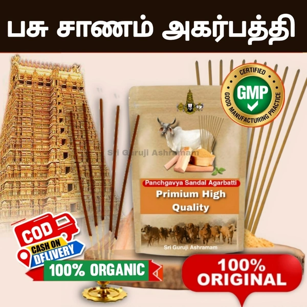 Panchgavya Sandal Agarbatti made of of five products obtained from cow’s Ingredients- cow dung, urine, milk, curd and ghee and  additional Mysore Sandalwood oil Essential.