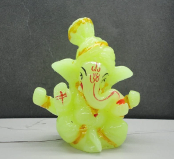 Glow in the dark Car Dashboard Ganesha Idol with Pugri