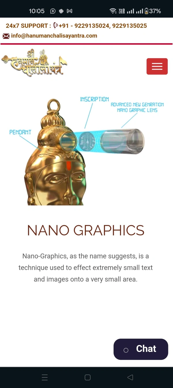 Hanuman Chalisa Yantra Locket Chalisa Printed On Optical Lens with Chain