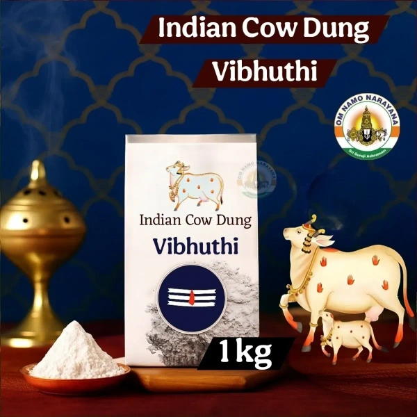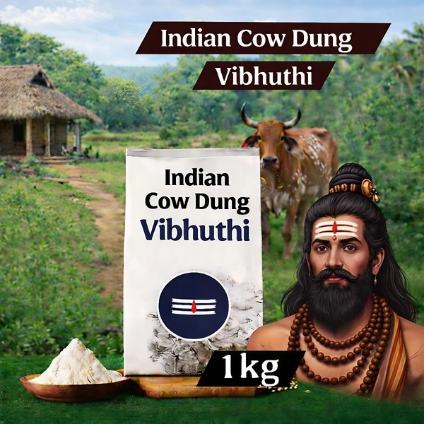 Prepared from natural Indian cow dung, this vibhuthi (sacred ash) is considered highly auspicious in Hindu tradition. It is widely used in puja, homam, abhishekam, and temple rituals, symbolizing purity and divine blessings.