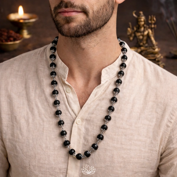 Buy original Karungali Mala with German Silver fittings. Natural ebony wood beads for meditation, protection, and positive energy. Trusted quality, spiritual benefits.