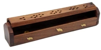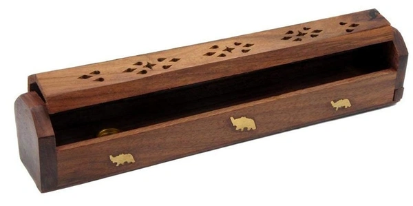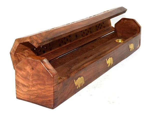 Beautiful carved Agarbatti holder by skillful artisan with engraved brass elephant in Sheesham wood ( Rose wood), to burning Agarbatti or cone without spill a ashes, complete your pooja with Agarbatti holder