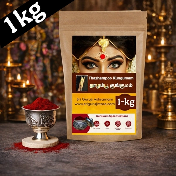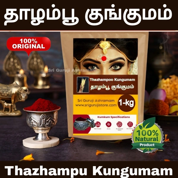 SRI GURUJI ASHRAMAM thazhampoo Kumkum powder has a unique aroma that comes out only in the blend of handpicked turmeric and the natural extract of thazhampoo (Screw Pine flower) . Kumkum is considered the purest and most expensive form of kumkum